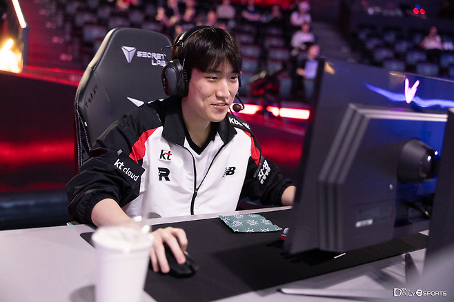 23일 오후 서울 종로구 그랑서울 롤파크 LCK 아레나에서 열린 LCK 4주 차 DRX와 kt 롤스터의 경기서 kt '캐스팅' 신민제가 손을 풀고 있다.