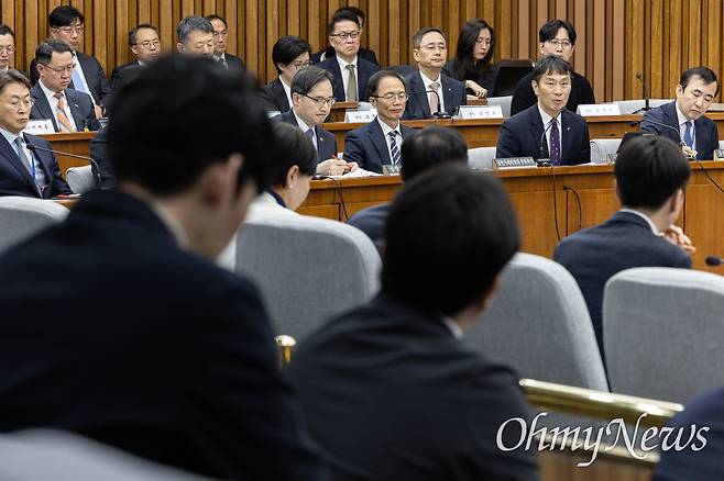 | ▲ 지난 3월 18일, 이복현 금융감독원장이 서울 여의도 국회 정무위원회에서 열린 홈플러스·MBK 파트너스 및 삼부토건 관련 긴급 현안질의에서 의원 질의에 답변하고 있다. |