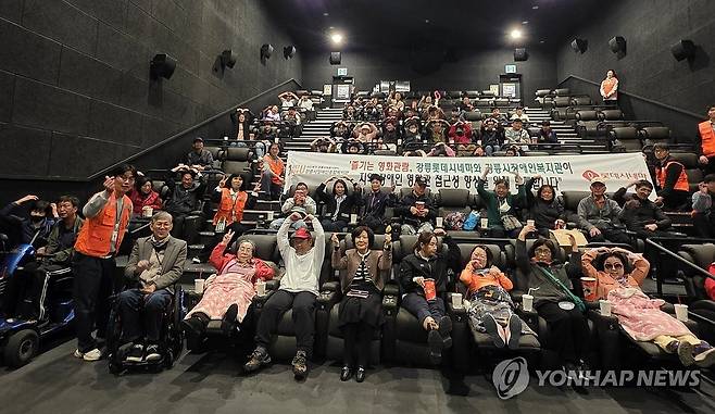 (강릉=연합뉴스) 강원 강릉시장애인종합복지관은 23일 강릉 롯데시네마에서 지체장애인을 포함한 장애인과 가족 등 60여 명이 특별한 영화 관람 행사를 진행했다고 밝혔다.