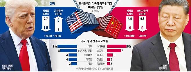 무역 단절 수준의 초고율 관세가 지속되는 상황은 양국 모두 피해가 불가피하다. 국제통화기금(IMF)은 현 수준의 관세가 유지되면 미국에서는 성장률이 하락하고 물가가 오를 것이라고 내다봤다. 중국과 관련해선 수출 감소로 성장률이 둔화해 디플레이션(물가 하락) 압력이 커질 것으로 봤다.