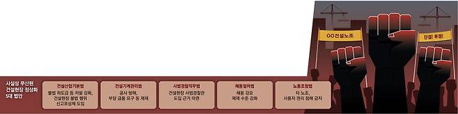 권대중 서강대 일반대학원 부동산학과 교수는 "건설노조의 불법·편법 행위는 건축비 원가를 올리고, 시공 품질 저하를 불러올 수 있다"며 "최종 피해는 입주민들이 입게 된다"고 지적했다.