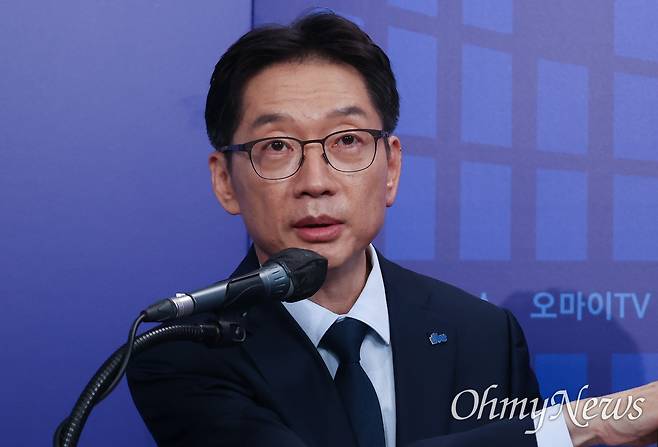 | ▲ 더불어민주당 제21대 대통령선거 경선에 나선 김동연 예비후보가 23일 오후 서울 여의도 오마이TV 스튜디오에서 열린 오마이TV 초청 토론회에서 모두발언을 하고 있다. |