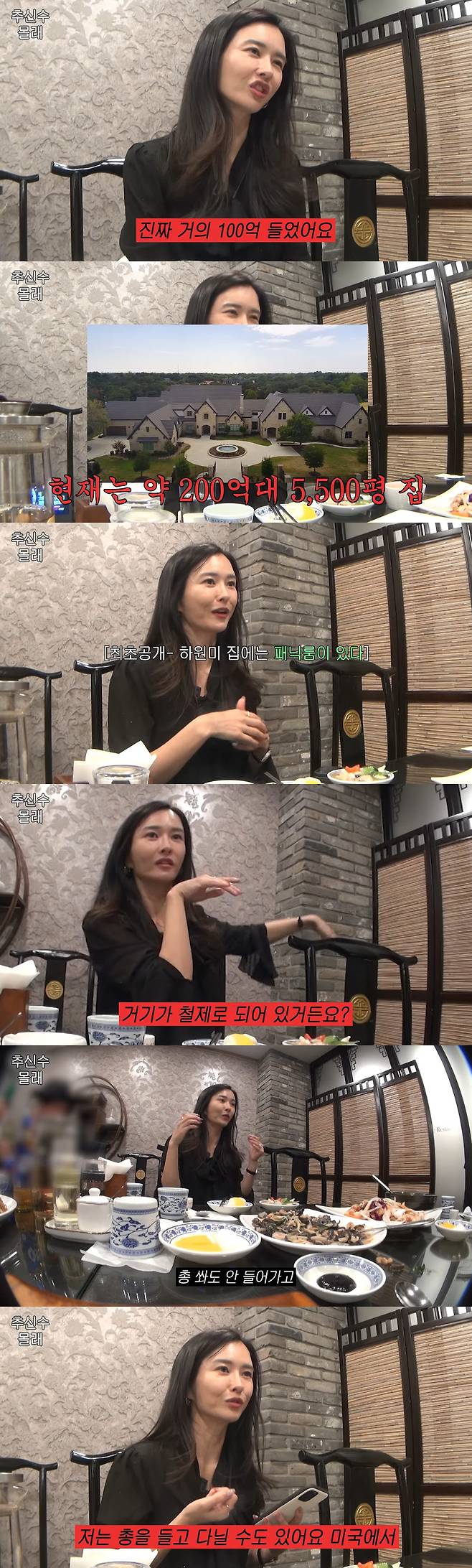 텍사스 집 시가에 대해서는 "처음 지었을 때보다 비싸졌을 거다. 거의 100억원이 들었는데 지금은 두 배까지 뛰었을 수도 있다"라고 말해 놀라움을 안겼다. 앞서 하원미는 미국 텍사스에 위치한 5500평 집을 공개해 화제를 모은 바 있다.