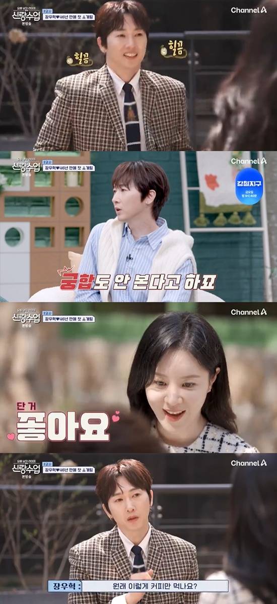 23일 방송된 채널A '요즘 남자 라이프-신랑수업'(이하 '신랑수업')에서는 장우혁이 심진화, 고우리가 주선한 소개팅에 나서는 모습이 그려졌다.