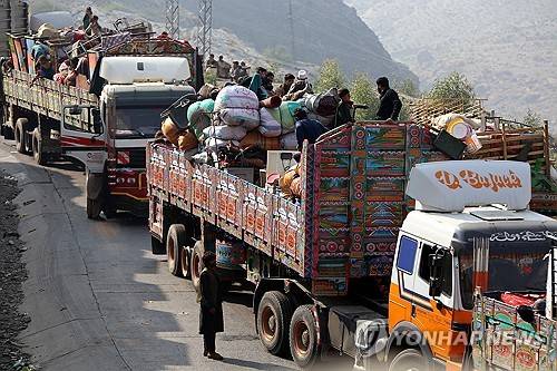 epa12049422 Afghan refugees sit atop trucks as they wait at a registration center before crossing into Afghanistan at the Pak-Afghan border near Torkham, Pakistan, 23 April 2025. Since 01 April, Pakistan has deported over 19,500 Afghans among more than 84,000 who have returned ahead of a 30 April deadline announced by the Pakistani government to expel undocumented individuals and holders of Afghan Citizenship Cards (ACC), according to UNHCR figures as of 16 April. EPA/ARSHAD ARBAB