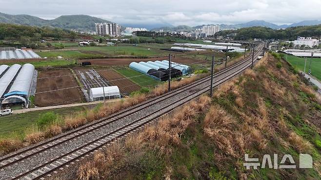 철로가 지나가는 땅은 경지정리작업으로 농업 생산성을 끌어올린 농업진흥구역 또는 농업보호구역이다.