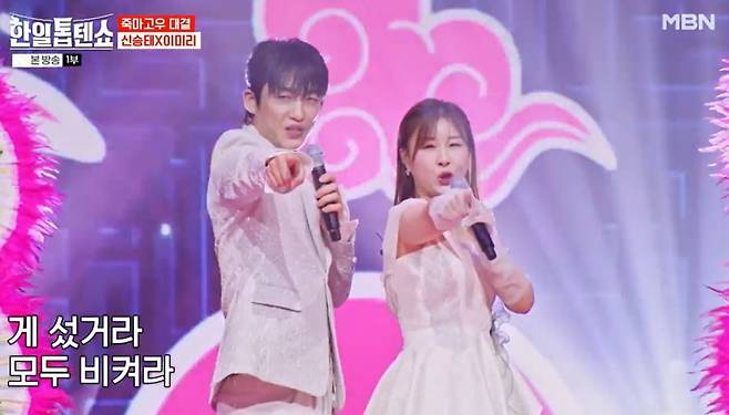 긴 무명 생활을 꿋꿋이 버티고 올라온 ‘짠한 현역들의 대결’에는 마이진과 효성, 에녹과 이현승이 팀을 이뤄 격돌했다. 에녹을 “녹동생”이라고 부르던 이현승은 에녹과 ‘철없던 사랑’을 그루브와 불꽃 댄스로 선보여 돌고래 비명을 지르게 했다. 무명이 10년 이상이라는 공통점을 지닌 마이진과 효성은 ‘쿵짝인생’으로 쭉 뻗는 사이다 보이스와 쿵짝댄스의 환상 컬래버를 이뤄내 승점을 획득했다.