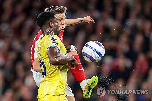 epaselect epa12049934 Leandro Trossard of Arsenal (R) in action against Marc Guehi of Crystal Palace (L) during the English Premier League soccer match Arsenal vs Crystal Palace in London, Britain, 23 April 2025. EPA/ANDY RAIN DITORIAL USE ONLY. No use with unauthorized audio, video, data, fixture lists, club/league logos, 'live' services or NFTs. Online in-match use limited to 120 images, no video emulation. No use in betting, games or single club/league/player publications.