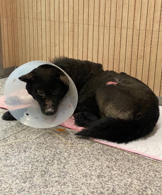 구조해 온 산불 피해견이 머무는 병원 입원실에 갔을 때였다.