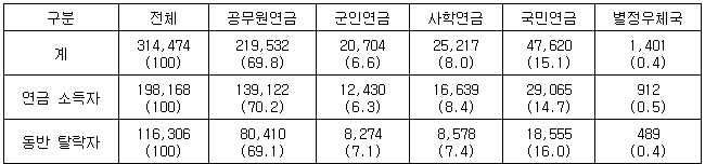 공무원연금 수급자가 압도적으로 많은 이유는 평균 수령액이 상대적으로 높아 연 2천만원 기준을 초과하는 경우가 그만큼 더 많기 때문으로 풀이된다.
