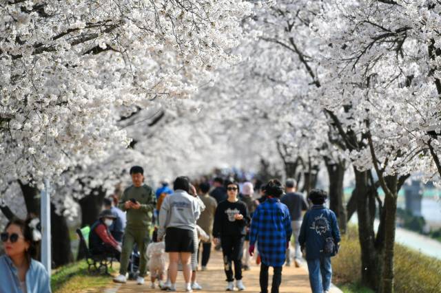 이곳에서는 벚꽃이 만개한 산책로를 따라 가족, 친구, 연인들과 함께 봄날의 정취를 즐길 수 있다. 특히, 해가 지면 벚꽃을 비추는 화려한 조명이 더해져 낭만적인 분위기를 한층 돋운다.