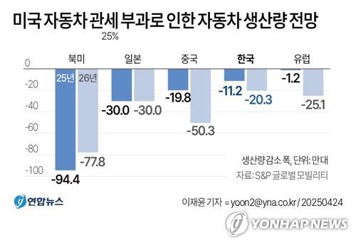 [그래픽] 미국 자동차 관세 부과로 인한 자동차 생산량 전망