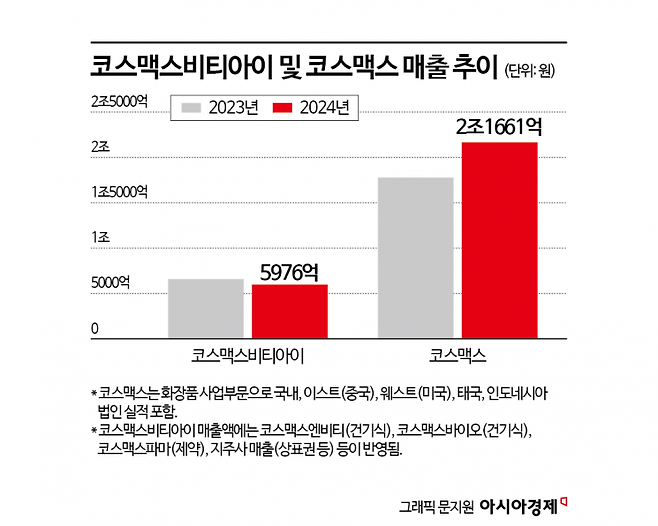 코스맥스비티아이는 지난해 역신장했다. 지난해 매출액은 5976억원, 영업이익은 168억원이다. 각각 전년 대비 5%, 17% 후퇴했다. 미국과 호주, 국내 등에 공장을 두고 글로벌 건기식 ODM 사업을 벌였지만 실적은 부진했다. 코스맥스엔비티는 미국 사업 부진 여파로 지난해 3180억원의 매출액을 기록해 전년 대비 5% 줄었다. 코스맥스바이오도 소비심리 위축으로 국내 고객사들이 주문 물량을 줄이면서 매출액이 10% 감소한 1467억원을 기록했다. 제약 부문인 코스맥스파마는 391억원의 매출로, 전년대비 17% 감소했다.