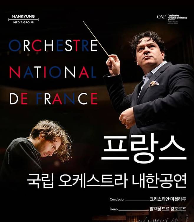 '프랑스 국립 오케스트라 내한공연'이 오는 29일 서울 롯데콘서트홀과 30일 예술의전당 콘서트홀에서 열린다. 크리스티안 마첼라루가 지휘하고 피아니스트 알렉상드르 캉토로프가 협연한다. '올 생상스' 포함 2개의 프로그램을 선보인다.