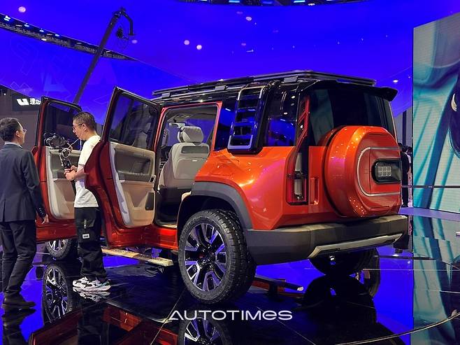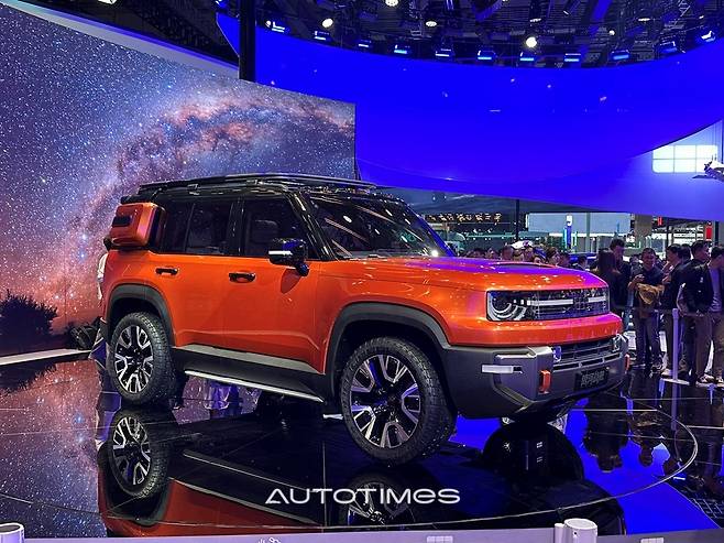 이날 공개한 신차는 전기차, 하이브리드, 주행거리연장형전기차(EREV)를 아우르는 파워트레인을 갖춘 콘셉트다. AI를 기반으로 한 지형반응모드와 수륙양용기능까지 갖춰 험로 주행 능력도 극대화했다.