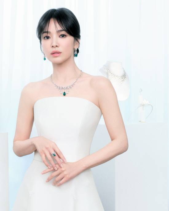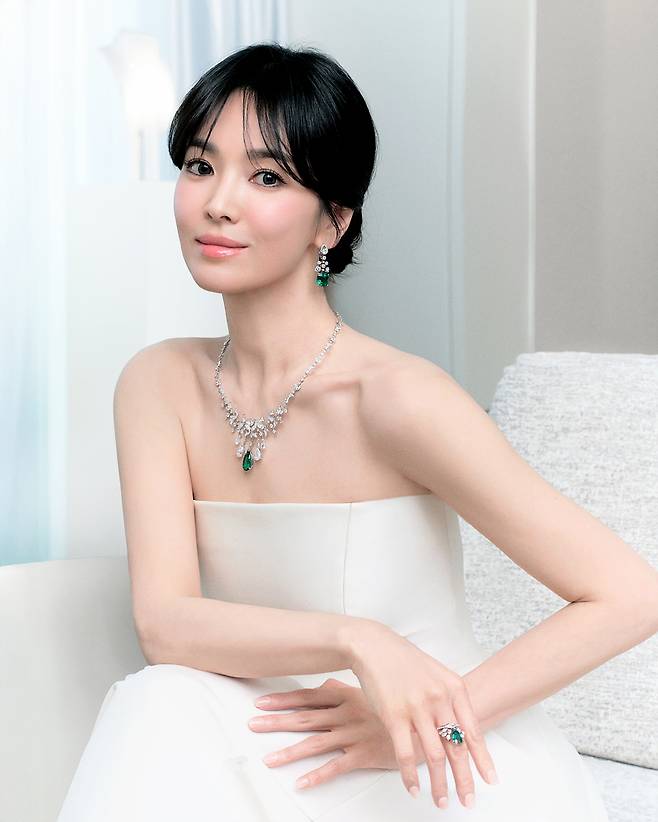 송혜교는 메종의 상징적인 작품인 푸시아 티아라(Fuchsia Tiara)에서 영감을 받아 탄생한 수아 드 페트(Joséphine Soir de Fête) 컬렉션의 네크리스와 이어링, 링을 착용했다.