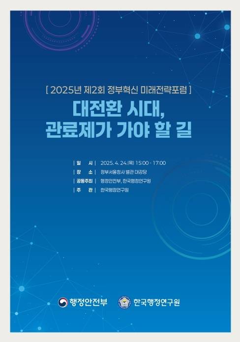 올해 두 번째 열리는 이날 포럼에서는 ‘대전환 시대, 관료제가 가야 할 길’이라는 주제로, 권혁주 한국행정연구원장을 비롯해 중앙부처·지자체 공무원 등 160여 명이 참석한다