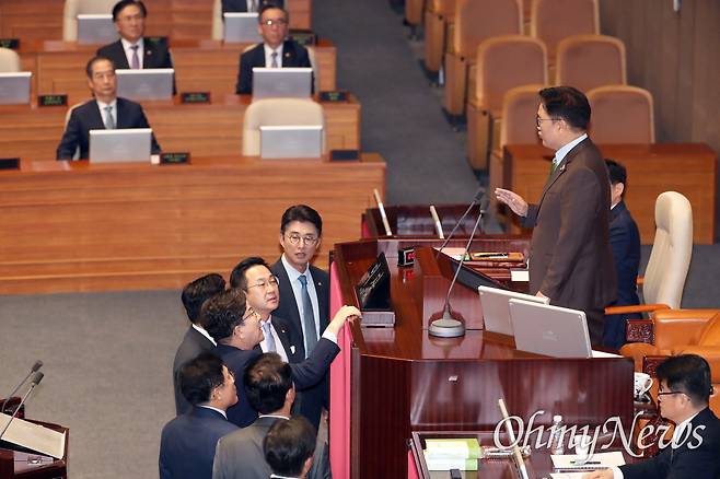 우 의장은 시정연설을 마친 한 권한대행에게 "잠깐 자리에 앉아 계시라"며 말문을 열었다.