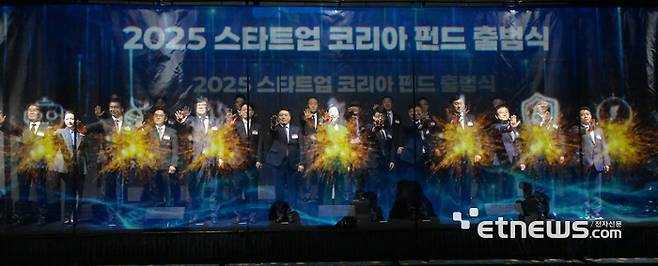중소벤처기업부와 한국벤처투자가 주최한 '2025 스타트업 코리아 펀드 출범식'이 24일 서울 마포구 호텔나루서울엠갤러리에서 열렸다. 오영주 중소벤처기업부 장관을 비롯한 펀드 출자기관 관계자들이 기념촬영을 하고 있다. 앞줄 왼쪽부터 신상한 한국벤처투자 부대표, 성유진 코스맥스 상무, 박지훈 한일홀딩스 대표, 서상연 GS건설 상무, 나준호 LX세미콘 부사장, 김근환 포스코홀딩스 전무, 김인태 IBK기업은행 부행장, 오영주 장관, 아키사미타케 CMIC 대표, 이재국 한국제약바이오협회 부회장, 황종연 NH농협금융지주 부사장, 전근식 한일시멘트 대표, 최혁재 스푼랩스 대표, 임정욱 중소벤처기업부 창업벤처혁신실장.