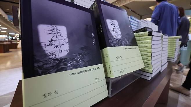 ▲ 24일 서울 종로구 교보문고 광화문점에 한강 작가의 노벨상 후 첫 신간인 '빛과 실'이 진열돼 있다.