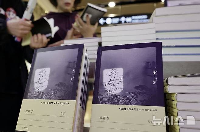[서울=뉴시스] 최동준 기자 = 24일 서울 종로구 교보문고 광화문점에서 시민들이 한강 작가의 신작 산문집 '빛과 실'을 살펴보고 있다. 2025.04.24. photocdj@newsis.com