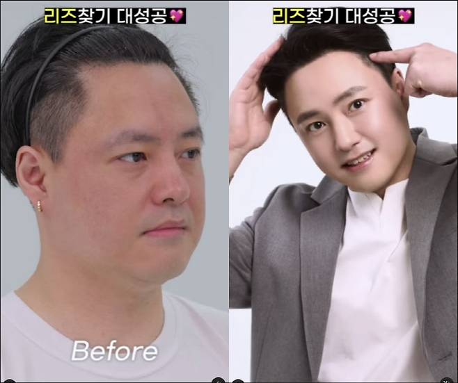 헤어라인과 정수리에 모발 이식을 해 자연스럽게 풍성한 머리로 변신한 노유민.