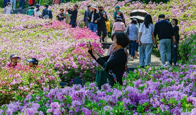 '활짝 피었수다' 철쭉 따라 나서는 봄 나들이 [한강로 사진관]