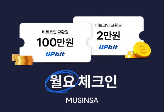 무신사는 업비트와 함께 28일 ‘월요 체크인’ 이벤트를 통해 총 20억 원 상당의 비트코인 교환권을 경품으로 제공한다. 이벤트 당첨자 중 1등 10명에게는 100만 원 상당의 비트코인 교환권을, 2등 10만 명에게는 2만 원 상당의 비트코인 교환권을 지급한다.