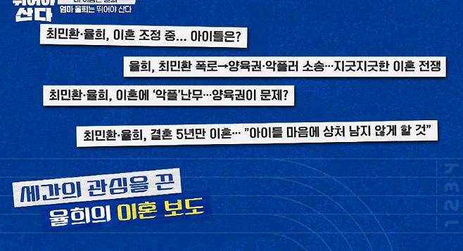 율희는 "저는 다른 건 다 괜찮다. 나에 대한 소문은 괜찮은데 아이들에 대한 얘기가 나올 때마다 사실 마음이 아프다"며 아이들에 대한 무례한 말들에 속상했다고 털어놓았다.