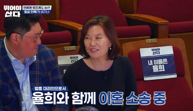 양소영은 "제가 율희씨 이혼 변호사다. 지금 율희씨 이혼 법률 대리인이다. 우리 곧 재판 나가야 하는데"라며 율희를 보고 놀라워 했다.