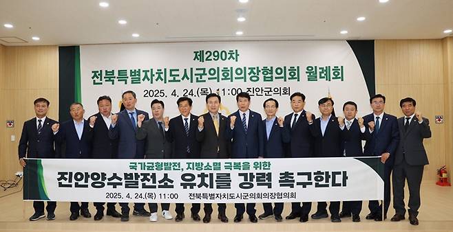 전북특별자치도시군의회의장협의회(회장 남관우 전주시의회 의장)는 24일 진안고원산입치유원에서 제290차 월례회를 열고, 국책사업으로 추진되는 진안양수발전소 유치를 촉구했다.