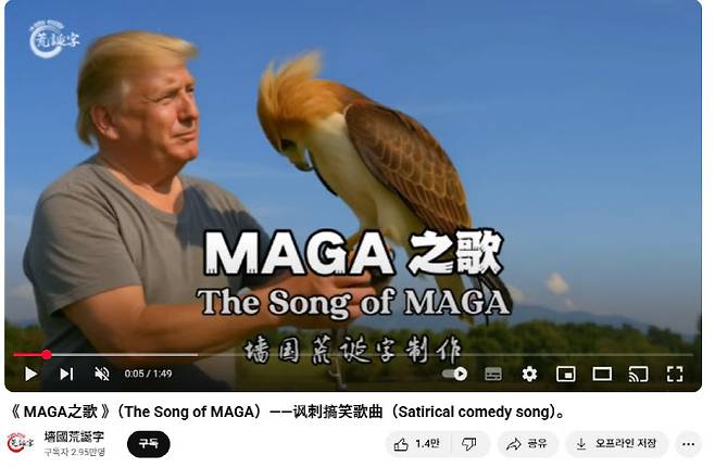 뉴욕타임즈(NYT)에 따르면 시진핑 중국 주석을 풍자하던 패러디 음악 영상을 제작하던 한 유튜버가 이번에는 트럼프 대통령을 주제로 한 'MAGA(Make America Great Again)의 노래'를 만들었다.