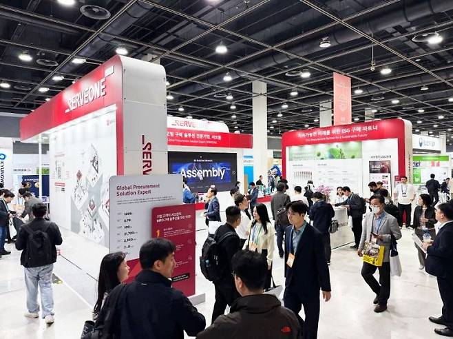 구매 솔루션 전문기업 서브원은 4월 24일(수), 서울양재동 aT센터에서 '2025 자동차부품산업 ESG·탄소중립박람회'를 개최했다. 업계 관계자들이 서브원 부스에서 자동차 부품사에 필요한 ESG 솔루션 등을 살펴보고 있다.