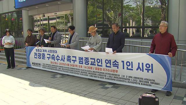 개신교·불교·원불교·천도교·천주교 5대 종단 연대체인 범종교개혁시민연대는 오늘(24일) 서울 서대문구 경찰청 앞에서 기자회견을 열고 “전광훈 구속은 의무”라며 이같이 밝혔습니다.