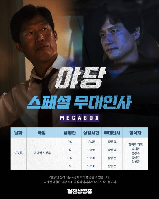 4월 30일(수) 오후 7시 20분 CGV 용산아이파크몰에서 진행되는 장재현 감독 스페셜 GV와 5월 6일(화) 오후 2시 50분 메가박스 성수에서 진행되는 류승완 감독 메가토크는 24일 오후 3시부터 CGV, 메가박스 홈페이지와 모바일 앱을 통해 예매 가능하며 상세한 내용도 확인할 수 있다.