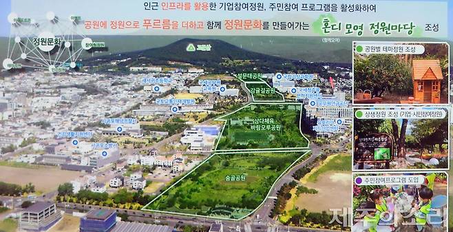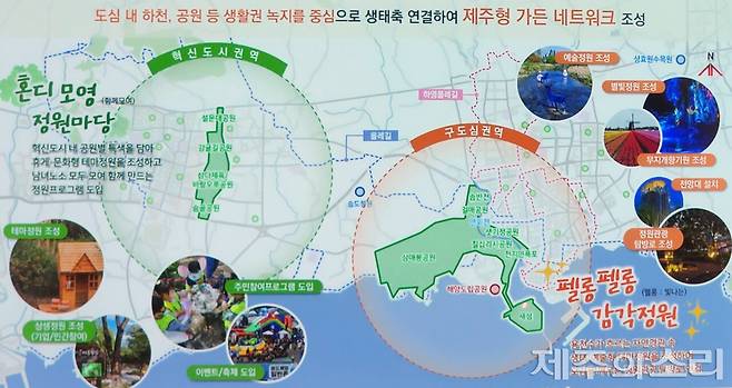 혁신도시 권역은 일주도로와 맞닿은 '숨골공원'부터 중산산도로 '설문대공원'으로 이어지는 혁신도시 공원을 연결하는 개념이다. 공원별 특색을 담은 휴게·문화형 테마정원을 조성하고 누구나 참여할 수 있는 정원프로그램을 도입하는 계획이다.