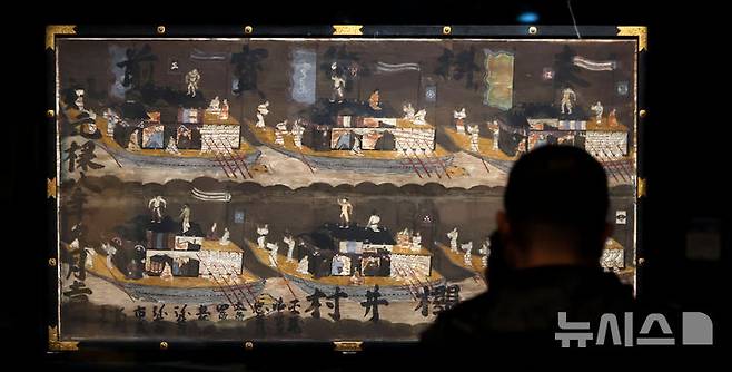 [서울=뉴시스] 김선웅 기자 = 24일 서울 종로구 서울역사박물관에서 조선시대 통신사 유물 특별전 '마음의 사귐, 여운이 물결처럼'이 언론에 공개돼 일본 미구쿠루미타마 신사에 봉헌된 통신사 그림 에마(繪馬)가 전시되고 있다.