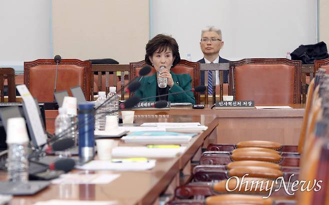 | ▲ 박선영 진실화해를위한과거사정리위원회 위원장이 24일 오후 서울 여의도 국회에서 열린 행정안전위원회 전체회의에서 신정훈 위원장의 퇴장 요청을 거부하고 있다. |
