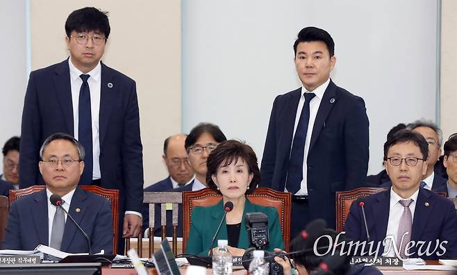 박 위원장의 답에 야권 의원석이 들썩였다. 용혜인 기본소득당 대표가 박 위원장을 향해 "국민은 다 안다"고 소리치자, 국민의힘 측에선 "(박 위원장에게) 예의를 지켜라"는 고성이 터져 나왔다. 용 의원은 이에 "누구한테 예의를 지키나. 5.18 희생 영령들한테 예의를 지켜라"고 맞받았다.
