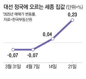 대선 정국에서 대통령실의 세종시 이전 등 공약이 나오며 세종시 집값이 들썩이고 있다. 아파트 거래량도 두 달 전에 비해 2배 가까이 늘어났다.
