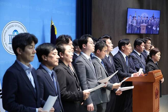 - 윤건영 민주당 의원, 전정권탄압대책위원회 기자회견
