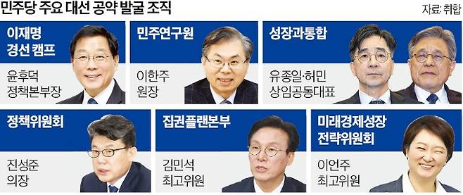 당 정책위원회, 민주연구원, 집권플랜본부, 미래경제성장 전략위원회 등 다른 정책 지원 조직과의 갈등설도 제기된다. 이 후보의 ‘40년 멘토’인 이한주 민주연구원장이 성장과통합 관련 내부 문제 제기를 했다는 얘기도 있다. 민주당 관계자는 “더 좋은 정책을 만들기 위해 논쟁할 수는 있지만 자칫 차기 정부 요직을 놓고 다투는 것처럼 비칠까 우려되는 시선이 있던 것도 사실”이라고 했다.