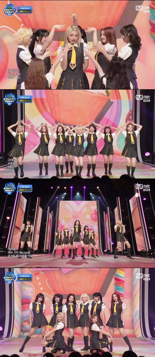 이날 유니스는 'SWICY'한 10대 소녀로 완벽 변신해 싱그러운 분위기를 연출했다. 이어 멤버들은 요정 같은 사랑스러운 비주얼도 함께 자랑하며 무대 시작부터 눈 뗄 수 없게 만들었다.