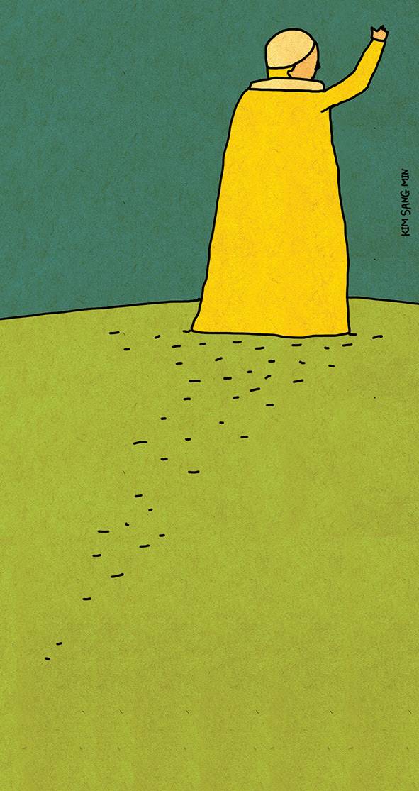 교황은 “나의 세속적 삶의 일몰이 다가오는 것을 느끼며 영원한 삶의 생동감 있는 희망과 함께…”라는 유언에 따라 바티칸 바깥에 묻힌다고 한다. 늘 아래로 가고자 했던 교황은 이제 바닥보다도 더 밑으로 몸을 눕힌다. 흙과 섞이고 지구가 된 프란치스코. 그는 세계이고, 아래가 그다.
