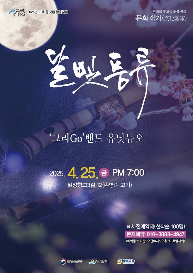 밀양시는 오는 25일 오후 7시 교동 손병순 고가에서 2025년 고택종갓집 활용사업의 하나인‘달빛풍류’공연을 시작한다.