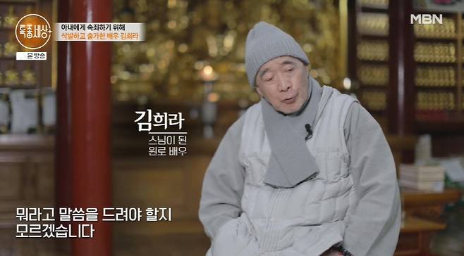 [스포츠조선닷컴 이게은기자] 배우 김희라가 아내에게 속죄하기 위해 78세에 스님이 된 사연을 전했다.