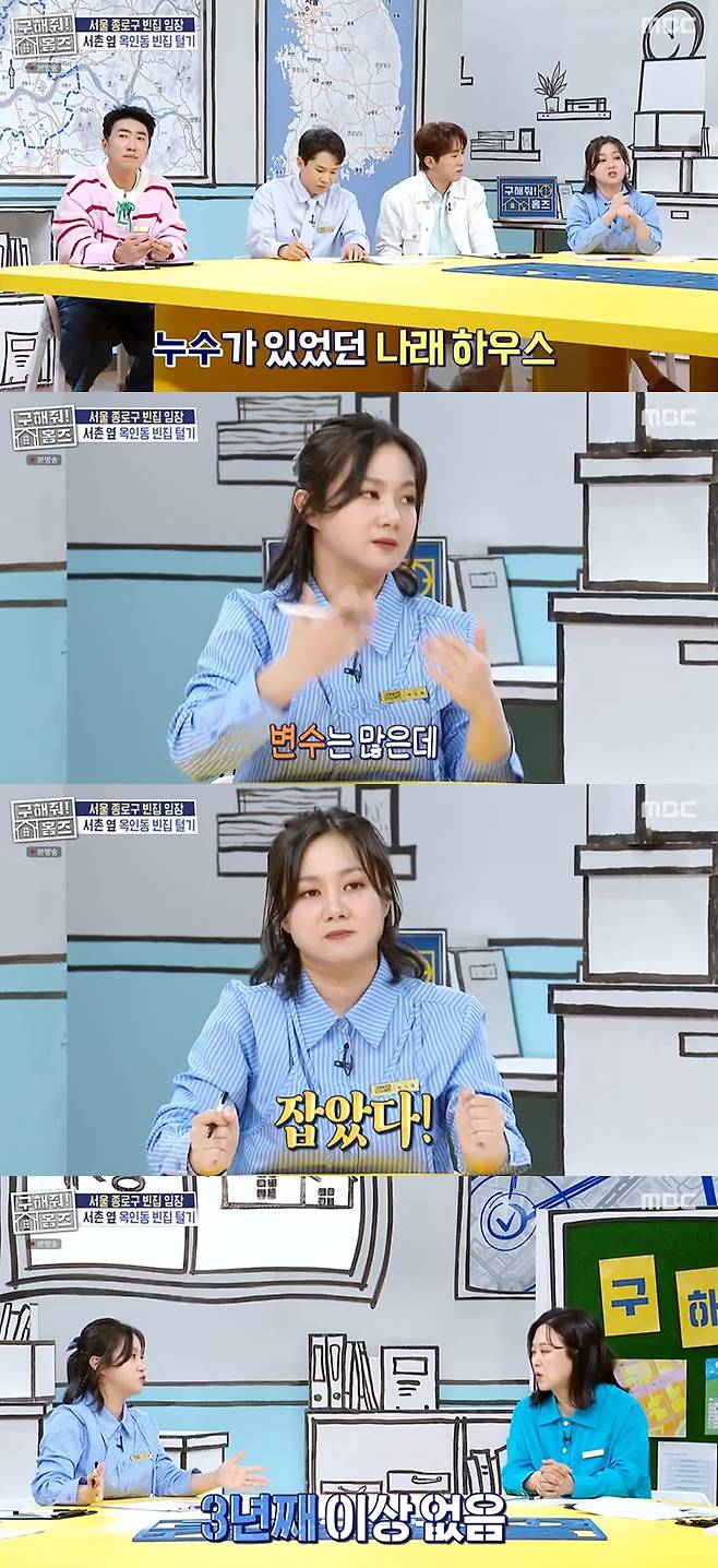 이를 본 박나래는 자신도 누수를 경험한 적이 있다며 "제가 살고 있는 집이 누수가 있었다. 변수는 많은데 (누수를) 잡아서 3년째 살고 있다. (누수를) 잡을 수 없는 거는 아니다"고 했다.