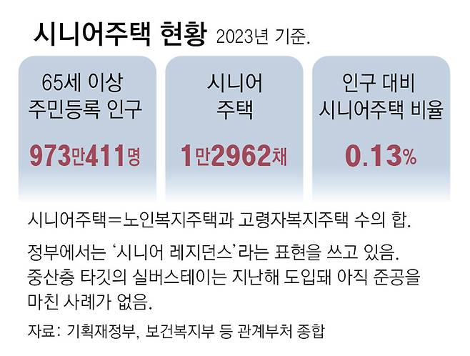 그럼에도 과감한 대책이 없다면 시니어 주택의 ‘만성 부족’이 이어질 것이란 지적도 나온다. 정부 고위 관계자는 “인구 감소 지역에서만 분양형 주택을 허용하겠다고 했는데 어떤 기업이 수도권 이외의 지역에서 분양에 나서겠느냐”며 “시니어 주택 생태계조차 갖춰지지 않은 만큼 일단 수많은 기업이 진출할 수 있게 웬만한 규제들을 적극 풀어야 할 것”이라고 강조했다.