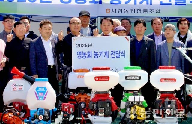 광주광역시 서창농협(조합장 김명열)이 17일 서창지점에서 임직원과 영농회장 등 40명이 참석한 가운데 ‘2025년 영농회 농기계 전달식’을 개최했다(사진).