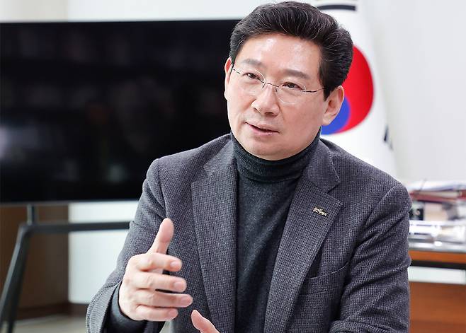 최근 용인은 도농복합도시에서 기업도시로 변신을 꾀하고 있다. 인구도 꾸준히 늘면서 저출생·고령화 시대에 대응하고, 지속 가능한 사회를 만들기 위한 다양한 정책들이 요구되는 상황이다. 이 시장은 “저출산 문제 해결을 위해 가족 친화적 환경을 조성하고 육아와 주거 안정을 지원하는 등 다양한 방법을 동원하고 있다”며 “임신과 출산, 양육이 행복한 도시를 만들려 한다”고 설명했다. 그는 “아이 키우기 좋은 도시를 만드는 차원에서 취임 첫해부터 초·중·고교 교장과 학부모 순회 간담회를 열고 현장을 돌며 환경을 개선해왔다”고 했다.